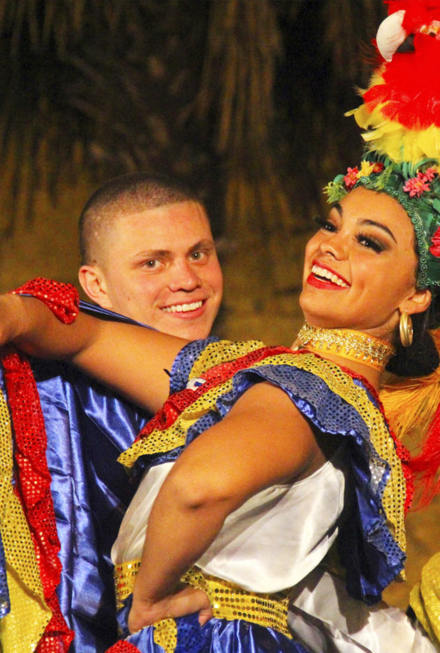 Le groupe danse au son d’un orchestre populaire qui dans son pays, rythme les processions et les fêtes villageoises. Mais en concert, il joue de la « marimba », cet instrument de bois exotique que l’on retrouve sous des formes différentes, dans tous les pays de l’Amérique centrale, et dont la douceur colle avec l’image fleurie et paisible de ce peuple de poètes. Le spectacle est un mélange de danses traditionnelles, du centre du pays, mais aussi de salsa, de la côte, ou encore de chorégraphies traditionnelles des zones les plus rurales du pays. On ne s’y ennuie jamais tellement les costumes, les danses, les musiques et les chants y sont foisonnants.