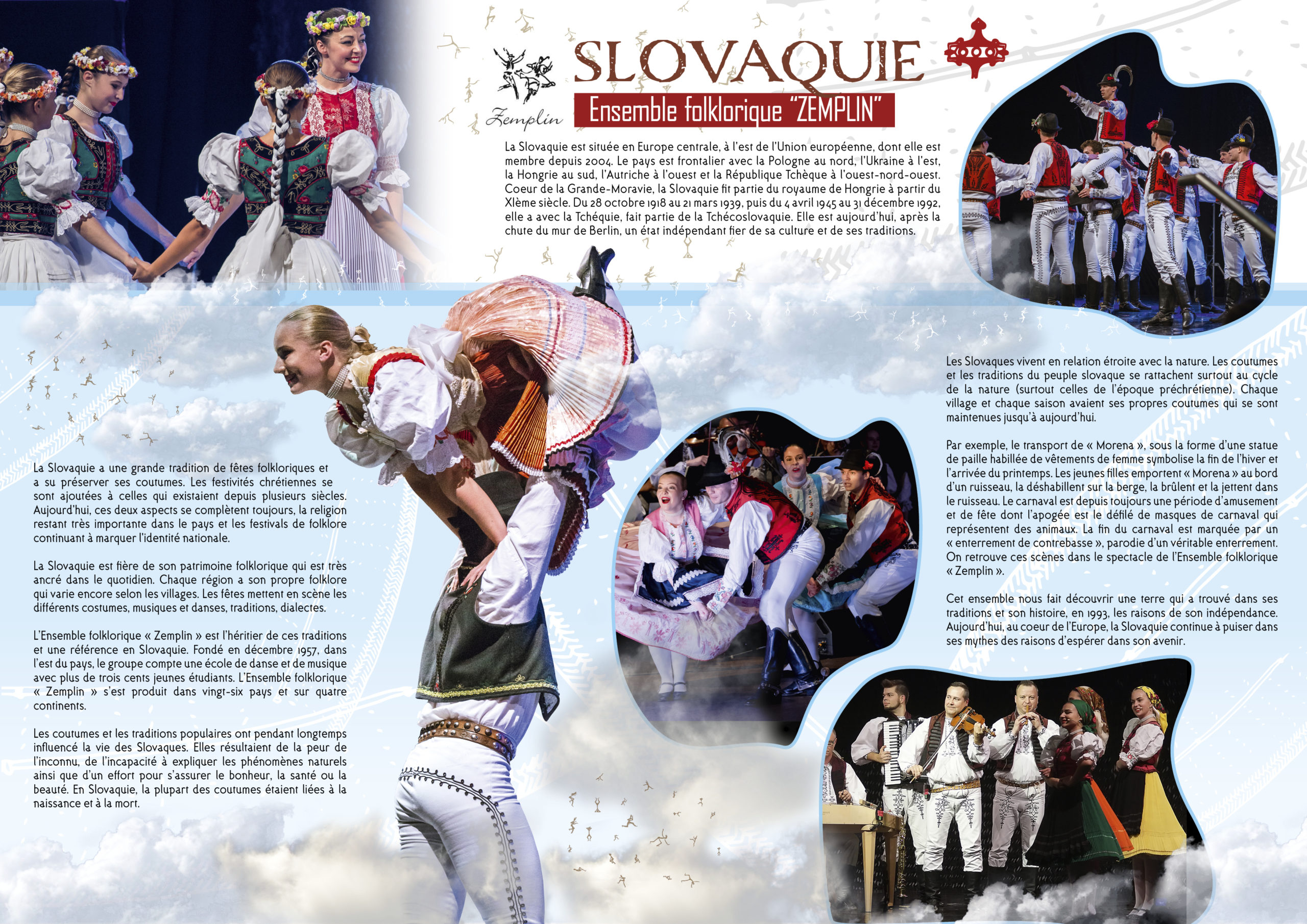 L’Ensemble folklorique « Zemplin » est l’héritier de ces traditions et une référence en Slovaquie. Fondé en décembre 1957, dans l’est du pays, le groupe compte une école de danse et de musique avec plus de trois cents jeunes étudiants. L’Ensemble folklorique « Zemplin » s’est produit dans vingt-six pays et sur quatre continents.