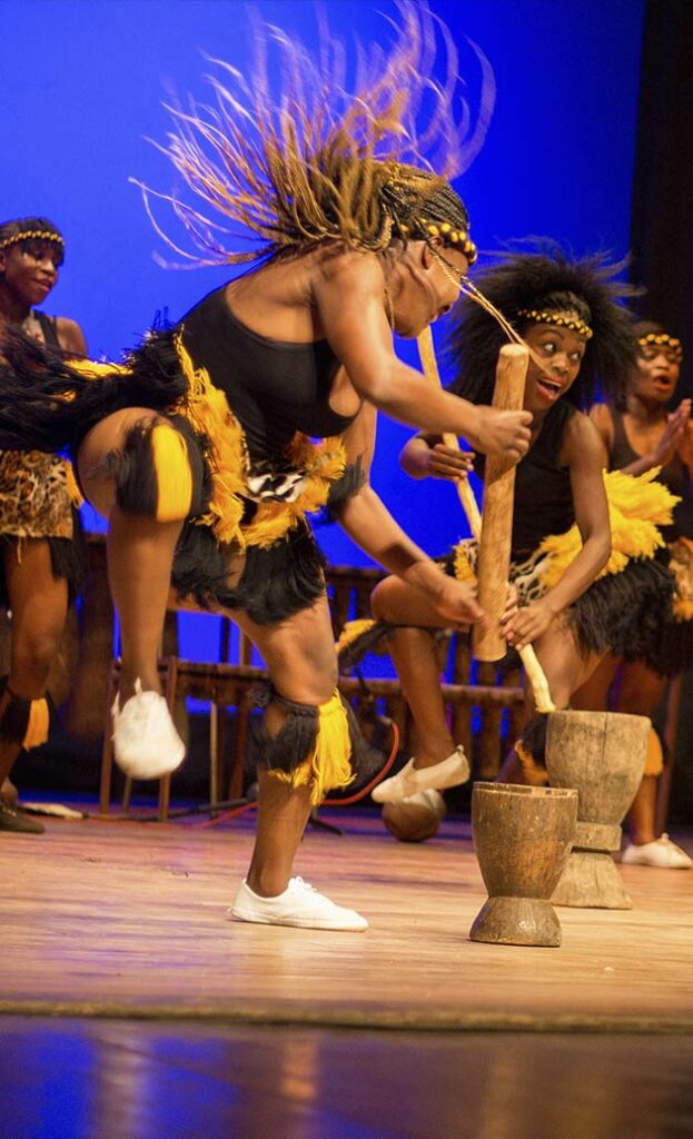 Divertissement, mode d’expression des émotions, la danse sert aussi à communiquer sa joie de vivre, sa compassion et la tolérance Le « huya titambe », spectacle nocturne donné par des danseurs accompagnés d’un orchestre de quarante instruments et tambours, est très populaire à Bulawayo, ville d’origine du groupe. Des femmes en tenue de soirée étincelante s’approchent lentement des hommes en dansant et en leur offrant des présents pour qu’ils chantent des couplets qui parlent de leur vie et de leur avenir. Alors, la musique mêle influences européennes et africaines. C’est tout cela que va vous offrir l’ensemble folklorique « Ezimnyama Dance Company »…